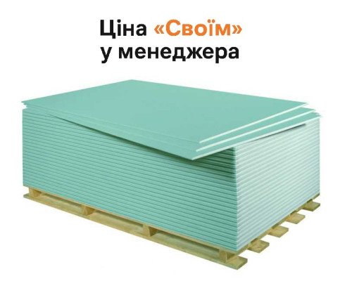 - Гіпсокартон стіновий вологостійкий KNAUF 12,5 мм — універсальний вибір для більшості житлових кімнат з гарантією довговічності.